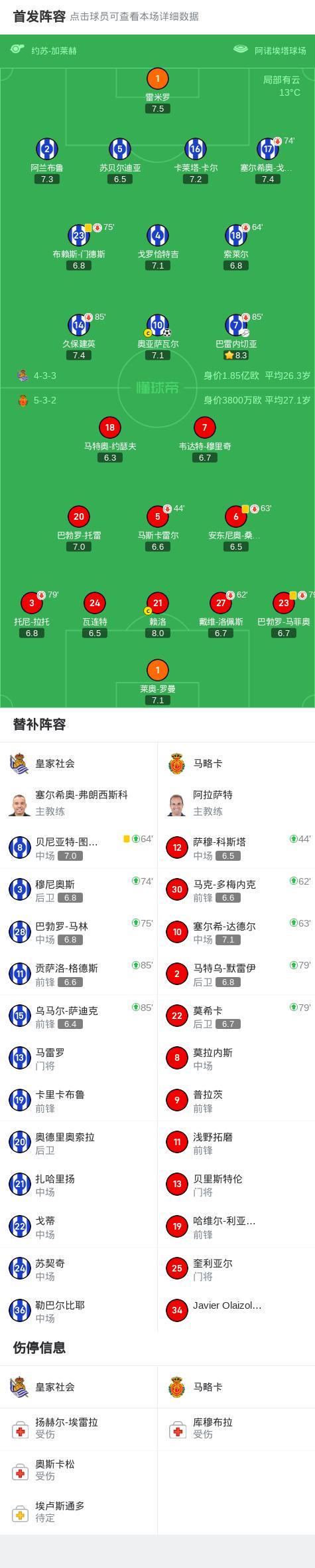 北京时间9月25日,西班牙足球甲级联赛第6轮,皇家社会坐镇主场迎战马略卡。比赛中,巴雷内切亚送出助攻,奥亚萨瓦尔破门得分,为球队打入制胜一球。最终,皇家社会以1-0战胜马略卡,全取三分。